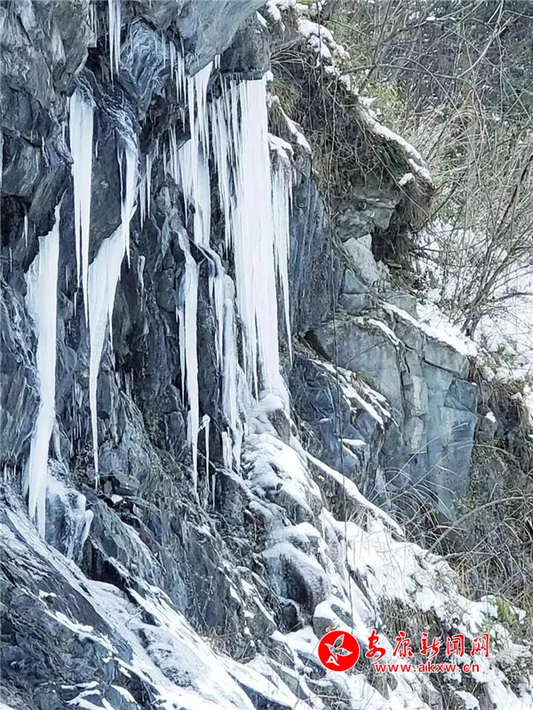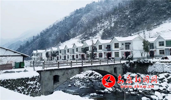 愈往深山走去,愈是銀裝素裹。發(fā)如雪,天作襯。色彩在這里失去了顏色,整個世界只剩下黑與白的構(gòu)圖。山澗中露出的黑巖,連綿著,將青絲的線條起伏蜿蜒地勾勒而出。山腳下一排排整齊的村民安置房,已顯出冬眠酣睡的樣子。樹林里帶著一層朦朧,在群山連綿中起伏著,為這雪天獻上了一幅絕美的水墨畫卷,也更增加了幾分神秘。