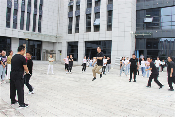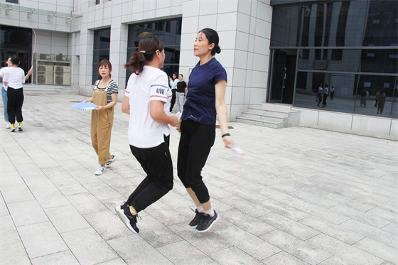 當(dāng)然比賽中還有許多“小插曲”,有的選手鞋帶松了,有的選手繩子扭了,有的選手眼鏡掉了,有的選手被大繩打到疼得哇哇叫,但正是因為有了這些小插曲,才讓參與者的笑聲更響,讓這場比賽變得更生動有趣,也讓“快樂工作、幸福生活”這句話有了最真實的體現(xiàn)。