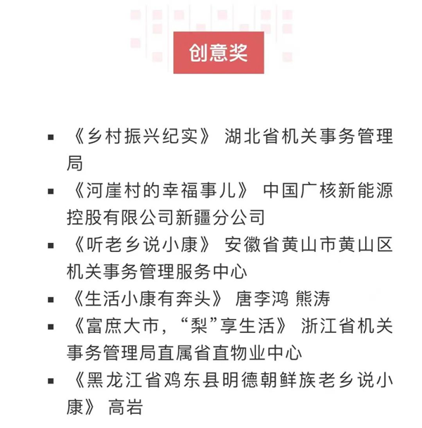 其中,恒口示范區(qū)選送作品《生活小康有奔頭》(作者·唐李鴻、熊濤)榮獲創(chuàng)意獎(jiǎng),其風(fēng)格親切,制作精良,感染力和觀賞性強(qiáng)。作品從獨(dú)特老鄉(xiāng)視角,讓老鄉(xiāng)當(dāng)主角,面對(duì)鏡頭講述自己用勞動(dòng)創(chuàng)造幸福生活的故事。同時(shí),生動(dòng)展示我們黨帶領(lǐng)全國(guó)各族人民打贏脫貧攻堅(jiān)戰(zhàn),全面建成小康社會(huì)的偉大歷史成就。?