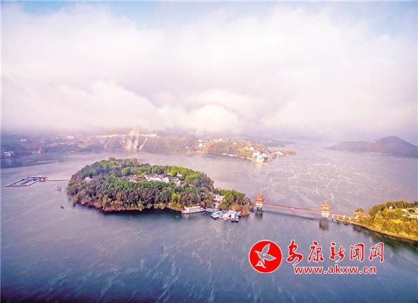 景隨人動,瀛湖最美的季節(jié)還不在春天。深秋時節(jié),電站大壩下閘蓄水,水位上升,湖面開闊,山啊、樹啊宛立在水中,道不出的萬種風情。水色如煙,光影朦朧,島嶼羅列,山水相依相親,如夢似幻。此時大自然早已少了春的細賦描繪,已是濃墨重潑的巨幅寫意,山上樹葉五彩斑斕,深紅、橙紅、橙黃、明黃、碧綠、墨綠,層層疊疊、深淺不一,把大山裝扮得分外妖嬈,哪里還有“枯藤老樹昏鴉”的凄涼景象?