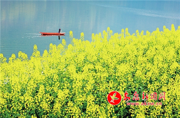 瀛湖的春天,立春很久才姍姍而來。春風拂過山間林木,樹木爆芽吐綠。起初是一樹一樹的鵝黃,帶著幾分詩意。沒幾天,便是翡翠般的新綠,煥發(fā)著勃勃的生機。藍天麗日下,一池湖水碧波萬頃,如一面巨大的鏡子鋪展在天地間。頭頂?shù)乃{天白云,四周的紅花綠樹,全都靜臥湖底。魚兒開始產(chǎn)子,孕育后代,來來往往的游船載來四面八方的游客,火了周邊的農(nóng)家樂,鼓了村民的腰包。