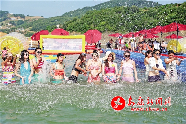 瀛湖的初夏,萬千變化。清晨,山和水還在夢中酣睡,一輪紅日從東面湖的盡頭沐浴而出,爬上山頭,霞光染紅了湖水,染紅了天空,湖面顯得更加清幽。傍晚,落日熔金,給群山鍍了一層金邊。此時,群鳥歸隱,群魚入眠。江風攪動湖水,湖面波光瀲滟,明麗動人。晚歸的漁民搖著一葉扁舟在寂靜的湖面上飄蕩,成為畫中最美的風景。習習涼風也吹散了白日的暑熱,舒適愜意,是休閑避暑的好去處。若遇雨天,天地間扯起絲絲銀線,水天一色,如煙如霧,籠罩在瀛湖上空。那若有若無輕煙一樣的雨霧輕盈地飄蕩在湖面上、群山間,翠屏山莊上的亭臺水榭、湖心碧螺島上的螺峰塔,全都沐浴在水蒙蒙的輕紗中,如夢似幻?!拔魅角鞍橈w,桃花流水鱖魚肥。青箬笠,綠蓑衣,斜風細雨不須歸?!贝藭r,湖里的魚兒成群結隊地游出水面透氣,正是釣魚的最佳時機,湖邊不少垂釣愛好者正興致勃勃地冒雨釣魚,完全不顧雨已打濕了衣服。湖中,一葉葉漁舟和游船在雨中漫游,幽幽絲竹之聲從游船中飄出,像游走在煙雨迷蒙的江南水鄉(xiāng)。