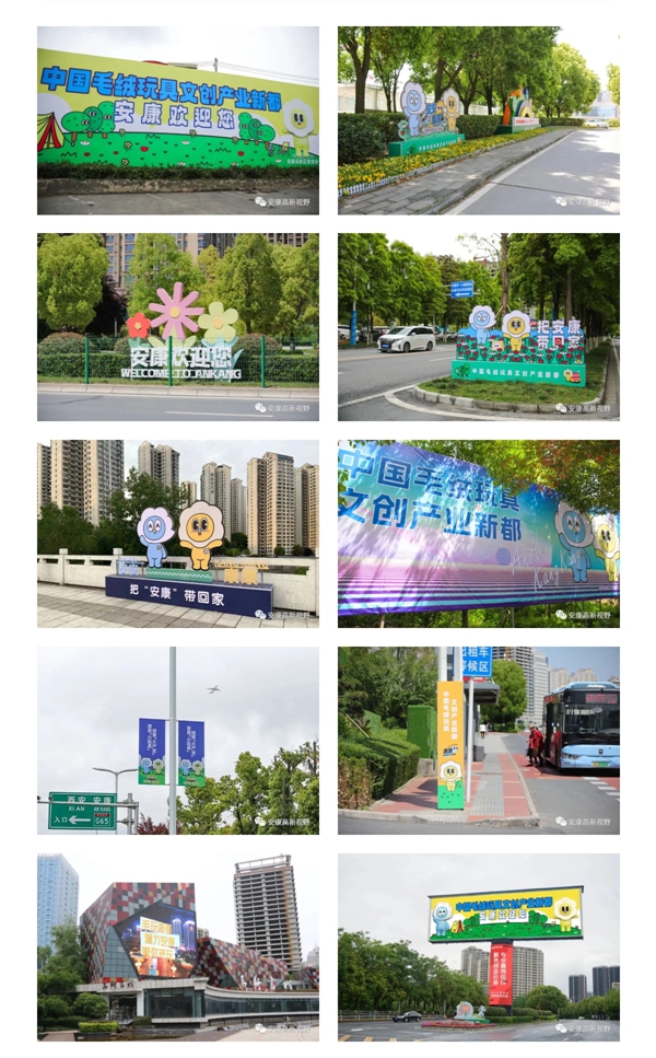 連日來,漫步在安康高新區(qū)的大街小巷,皆是造型可愛、活潑動人的“安安康康”毛絨玩具形象,一個個造型精致的景觀小品,一幅幅主題鮮明的公益廣告隨處可見,像是“會說話”的美麗風(fēng)景,將安康“中國毛絨玩具文創(chuàng)產(chǎn)業(yè)新都”的形象傳遞在街頭巷尾,散發(fā)出濃厚的“五一”假日氛圍。
