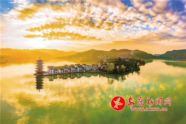 在瀛湖,冬日里的暖陽往往午后才露出羞澀的笑臉。聽說清泉老碼頭新打造了一座古香古色的小鎮(zhèn),與四周的群山和這里的大湖面渾然一體,美麗壯觀。11月下旬的一個(gè)下午,待云霧慢慢散開,我和紀(jì)平、世軍驅(qū)車來到清泉老碼頭。過去,這個(gè)碼頭是跨漢江通往玉嵐的必經(jīng)之地,也是嵐河與漢江的交匯處?;鹗瘞r電站大壩蓄水后,這里呈現(xiàn)出瀛湖最開闊的湖面,螺峰島、翠屏島、玉興島、五龍山等形成了四面環(huán)水的島嶼,清泉、玉嵐、橋興、關(guān)埡子、紅巖堡、南溪溝、任家灣等地縱橫交錯(cuò),形成了諸多形態(tài)各異的半島。水位升至最高時(shí),“腰帶”消失,山與水渾然一體,與綿延的山勢(shì)溫柔相依。此時(shí)山頭已是草木蕭疏,只剩下光禿禿的樹枝了,而瀛湖兩岸卻秋意正濃,山坡上的紅黃綠像是被打碎了的調(diào)色盤,洋洋灑灑,帶著幾分溫潤嵌入山坡、映入湖中,在藍(lán)天白云的映襯下,宛如一個(gè)童話世界。忽然,一艘游船駛過,五彩斑斕的倒影頃刻被攪拌成彩色綢緞,任其在湖中翻滾飄蕩。夕陽劃過山頭的那一刻,紅霞漫天,湖面被染成橘色之后,一片寂靜。只有此時(shí),山之沉穩(wěn)端莊和水之嫵媚溫柔交融一體,呈現(xiàn)出無與倫比的美。我想,這不正是我想要的那幅極具詩情畫意的場(chǎng)景嗎?有感: