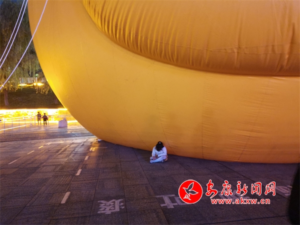 10月6日,漢江"大黃鴨"打卡點,出現(xiàn)了翻越圍欄,進入充氣氣球禁止區(qū)域的不文明旅游行為。(實習生 康研 王千龍)