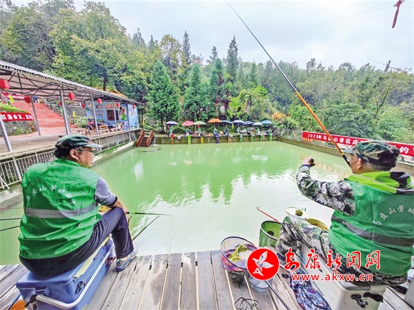 10月4日,平利馬盤山景區(qū)舉辦首屆垂釣比賽,讓游人體會了一次雨中垂釣的樂趣。詹永桂 攝