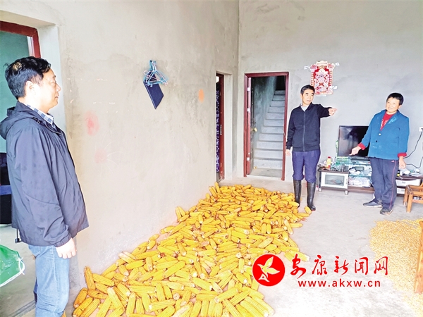 國慶長假期間降雨不斷,漢濱區(qū)稅務(wù)局駐村幫扶隊工作人員堅持節(jié)假日值班值守。圖為10月4日,該局駐村工作隊員深入農(nóng)戶了解村民秋糧作物晾曬情況。陳榮斌 攝