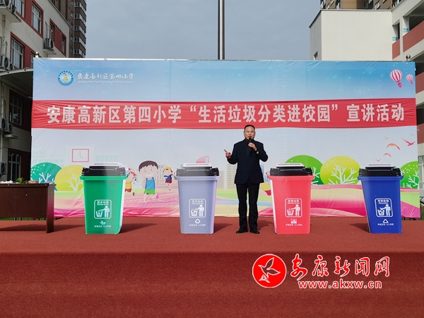 本網(wǎng)訊(通訊員 王宗濤)“同學(xué)們,我們是環(huán)境保護(hù)小天使,我們要讓山更青,水更綠,天更藍(lán),我們生活的家園更美麗!我們應(yīng)該養(yǎng)成垃圾分類(lèi)的好習(xí)慣。”4月9日上午,春陽(yáng)燦爛的安康高新區(qū)第四小學(xué)的操場(chǎng)上,生活垃圾分類(lèi)“進(jìn)校園”宣講活動(dòng)火熱進(jìn)行中。