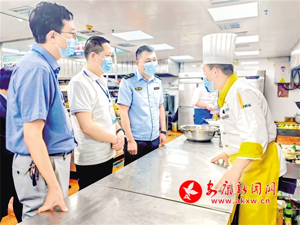 “五一”假日將至,漢濱區(qū)紀委監(jiān)委會同市場監(jiān)督管理部門對中心城區(qū)酒店餐飲服務場所開展監(jiān)督檢查。圖為檢查組在某酒店后廚了解情況。鄭時根 攝
