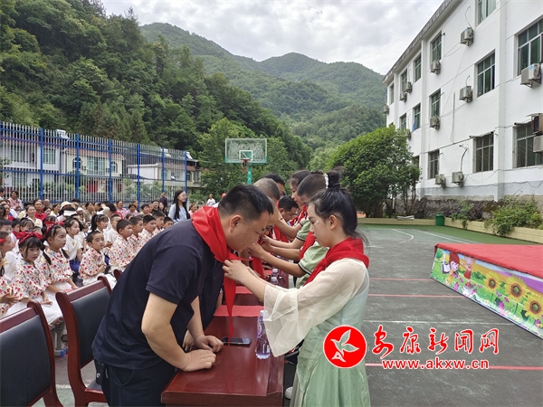 本網(wǎng)訊(通訊員?張萍)迎著火紅的隊旗,伴著嘹亮的號角,校園洋溢著節(jié)日的氛圍,5月31日,鎮(zhèn)坪縣洪石小學(xué)隆重舉行了“紅領(lǐng)巾愛祖國”新隊員入隊儀式暨慶“六一”科技藝術(shù)節(jié)。鎮(zhèn)坪縣武裝部、縣民政局、縣人社局、縣招商局、縣林業(yè)局、西安航空學(xué)院等相關(guān)領(lǐng)導(dǎo)出席此次活動,并為學(xué)校帶來教育幫扶資金,給孩子們送來了籃球、書包等禮品并致以節(jié)日的慰問。