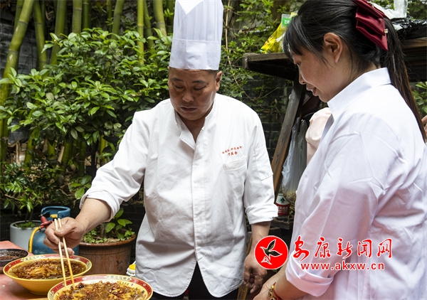 但隨著時(shí)代的發(fā)展,人們消費(fèi)理念的更新,能制作傳統(tǒng)白河“三點(diǎn)水”宴席的人越來越少,偌大一個(gè)縣,找不出幾個(gè)能夠獨(dú)當(dāng)一面制作傳統(tǒng)宴席白河“三點(diǎn)水”的廚師。所以他毅然決定辭去高薪的主廚工作,奔走于鄉(xiāng)村,上門做家政服務(wù),在實(shí)地操作技藝中傳幫帶一批會(huì)制作白河“三點(diǎn)水”宴席的鄉(xiāng)廚。