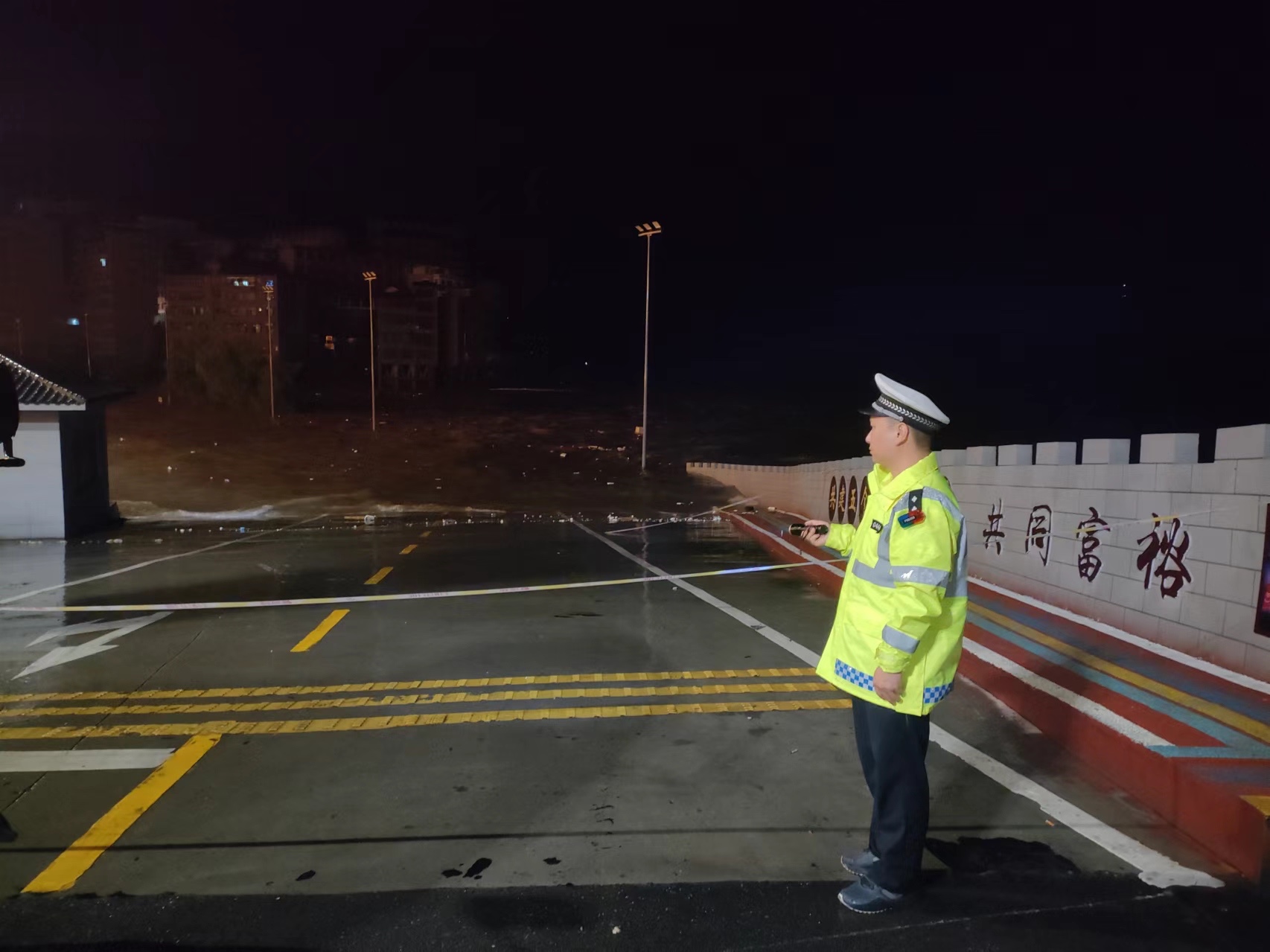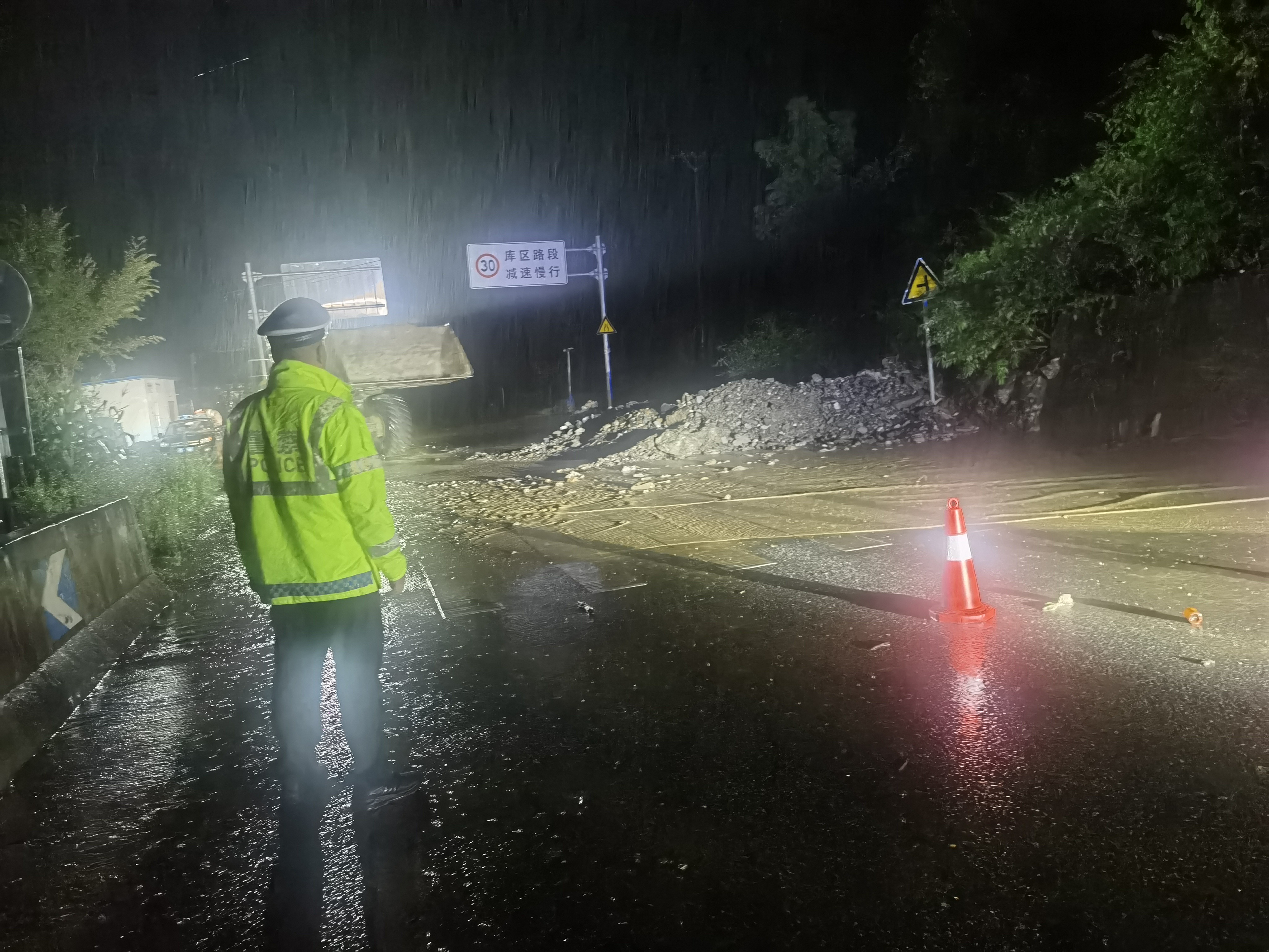旬陽市公安交警持續(xù)堅守防汛一線,無畏風雨、無懼危險,開展交通管控、救援救助、應急處突、隱患排除等相關(guān)工作,全力保障人民群眾生命財產(chǎn)安全。暴雨中,交警身著熒光綠雨衣,不畏風雨,堅守在重要路段,對有滑坡、落石等危險路段及具有安全風險的臨水臨崖路段,采取臨時禁行的管制措施,引導過往車輛繞行,注意行車安全,協(xié)同相關(guān)部門現(xiàn)場進行清理,對不能現(xiàn)場處理的隱患及時上報,確保排險不留盲點、隱患不留死角。同時加強道路的巡邏管控,通過遠端分流,引導車輛、行人安全有序通行,確保群眾出行安全。以雨為令,以夜為伴,逆風而行,通宵達旦,風雨中,一抹抹“熒光綠”在熠熠閃光。
