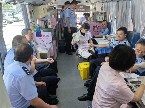 活動現(xiàn)場,參與獻血的公安干警們早早來到獻血點,在醫(yī)護人員的指導(dǎo)下,認(rèn)真填寫獻血登記表,依次接受健康征詢、血液初篩檢查、現(xiàn)場采血等流程。鮮紅的熱血順著導(dǎo)管緩緩流出,匯聚成了一份份愛心,每個人的臉上都洋溢著堅定和自豪。