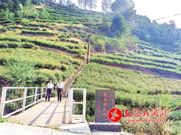 “十月有個小陽春,采點秋茶送親人?!庇锶张枺迕駨埑擅飨虿鑸@走去。當他在鋼架橋上與從茶山歸來的張成元相會,談起今年的茶葉收入時,不由得拍著橋頭的扶手感嘆道:“要感謝它呀!”