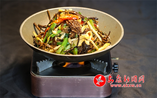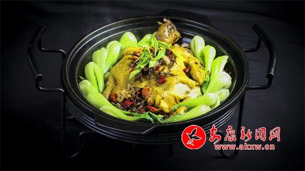 紫陽(yáng)茶香宴研發(fā)是張顯峰對(duì)菜品研發(fā)的起點(diǎn),面對(duì)紫陽(yáng)豐富的“好食材”,張顯峰有很多想法。他要做有地域特色的“好味道”。洋芋粑粑炒臘肉是紫陽(yáng)地域特色菜品,張顯峰做這道菜首先要選用紫陽(yáng)散養(yǎng)黑土豬臘肉,同時(shí)要選用高山黃心小洋芋,純手工制作洋芋粑粑。這樣做出的“洋芋粑粑炒臘肉”既有洋芋自然味道,臘肉咸香不油膩,洋芋粑粑筋道順滑口感好。與此同時(shí)他結(jié)合當(dāng)?shù)叵M(fèi)能力及餐廳定位研發(fā)制作的“秦巴山珍”,選用紫陽(yáng)本地出產(chǎn)的羊肚菌、茶樹(shù)菇、海鮮菇等優(yōu)質(zhì)菌類,菌類改刀后焯水,然后煨制入味,在拉油大火快炒后 放入特制有加熱功能的器皿中保持菜品溫度和味道。讓客人吃出“干香微辣”的口感。