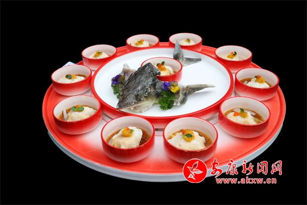 “陜南淡水魚(yú)餐飲暨‘贛義鑫杯’烹飪技能大賽”是張顯峰走出去學(xué)習(xí)交流檢驗(yàn)自己菜品研究成果的平臺(tái)。在準(zhǔn)備本次比賽菜品時(shí),他選用了紫陽(yáng)縣最好的食材“富硒鱘魚(yú)”、花鰱魚(yú),土黑豬五花肉及羊肚菌等蔬菜,精心制作了兩道菜品,第一道菜品是紫陽(yáng)茶香宴中的主菜——茶香鱘龍。這道菜擺盤高雅,肉質(zhì)細(xì)膩,口味鮮美,茶香與淡水魚(yú)的完美結(jié)合,讓人仿佛置身于清新的茶山之間,品味著大自然的饋贈(zèng)。