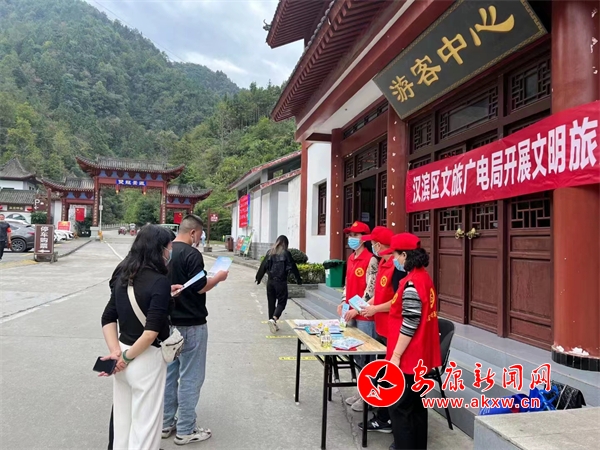 為增強游客的文明旅游意識,近日,漢濱區(qū)文旅廣電局組織志愿者們在雙龍景區(qū)現(xiàn)場向市民游客發(fā)放文明旅游宣傳折頁,宣傳講解文明旅游相關知識以及應當遵循的行為規(guī)范,引導游客有序排隊游玩。宣傳彩頁內(nèi)容既包含了安康的歷史文化、自然風光介紹,也強調(diào)了保護環(huán)境等文明旅游具體要求,旨在引導每一位游客成為文明旅游的踐行者和傳播者,從自身做起、從小事做起,共展文明風采,共樹文明形象,共享文明旅游好風景。(漢濱區(qū)委宣傳部供圖)?
