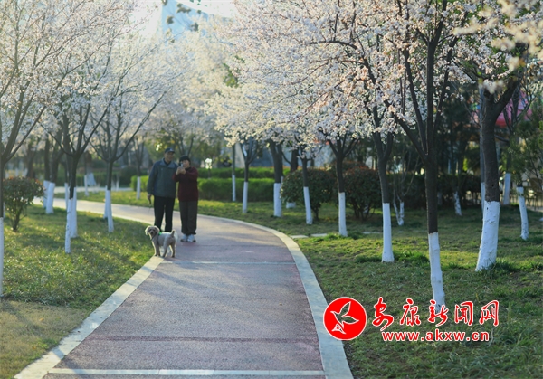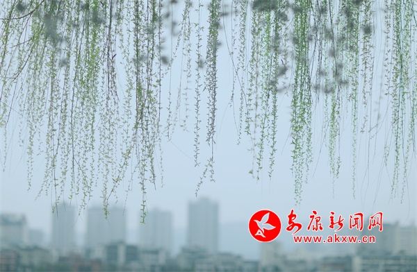 花朵盛開,柳樹垂絲,遠(yuǎn)處的城市建筑若隱若現(xiàn)。人們?cè)诮吢健⑿蓓?,享受著春日里的美好時(shí)光。此時(shí)的畫面將現(xiàn)代文明與自然生態(tài)完美融合,讓人感受到城市中一抹特有的清新與寧?kù)o。