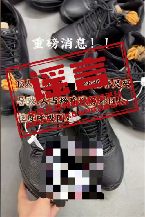 真相:近日,有網(wǎng)民在某平臺上發(fā)布視頻稱:“重磅消息?。?5人在龍口某倉庫搶奪尺碼,導(dǎo)致1人當(dāng)場昏迷,另外14人輕度呼吸困難,天降之禍”,引發(fā)社會關(guān)注。山東龍口網(wǎng)信部門巡查發(fā)現(xiàn)該情況后立即聯(lián)合當(dāng)?shù)毓膊块T啟動調(diào)查程序。調(diào)查發(fā)現(xiàn),此視頻發(fā)布者系當(dāng)?shù)仄放七\(yùn)動折扣店店主劉某。圖中“搶奪尺碼”是指斷碼甩賣的鞋子,有時(shí)商家為吸引顧客會搞類似的優(yōu)惠活動。而劉某為博取流量,吸引關(guān)注,自行編造并發(fā)布了上述謠言。目前,龍口公安已依法對劉某進(jìn)行行政處罰。(來源:山東互聯(lián)網(wǎng)聯(lián)合辟謠平臺)