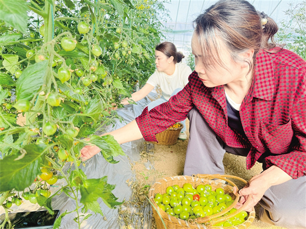 在分揀包裝區(qū),果農們將圣女果按顏色、甜度分級包裝?!扒嗌鸲雀撸m合鮮食;紅色果酸甜適中,主要供應餐飲店。”村民劉大姐介紹,自己以前在外地務工,現(xiàn)在在家門口就能上班,每個月能掙3000多元。在歡樂采摘區(qū),游客們一邊采摘一邊拍照,發(fā)微信朋友圈展示觀光采摘的樂趣。