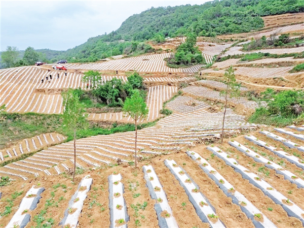 離開錢河梁,走進(jìn)海棠寺村的梯田里,種煙大戶吳義剛正迎著晨曦帶上20余名村民搶墑移栽。23年的種煙歲月在他臉上刻下溝壑,也沉淀出“致富良經(jīng)”。他瞇著眼睛笑著說:“去年新種的80畝煙田毛收入24萬,今年?duì)幦≡俣噘嶞c(diǎn),給孩子換臺(tái)好車。”當(dāng)目光撫過嫩綠的煙苗,手掌摩擦著滴灌管道,吳義剛驀然間變得激動(dòng):“雖然今春干旱嚴(yán)重,但是政府配發(fā)的抗旱設(shè)備讓移栽成活率大大提升,我們的心血總算沒有白費(fèi)?!贝逯Р繒泟⒌瞧巾斨胰账闫甬a(chǎn)業(yè)增收賬:“今年450畝煙田已基本栽完,11個(gè)大戶帶著小戶干,戶均增收能破萬元?!?/p>