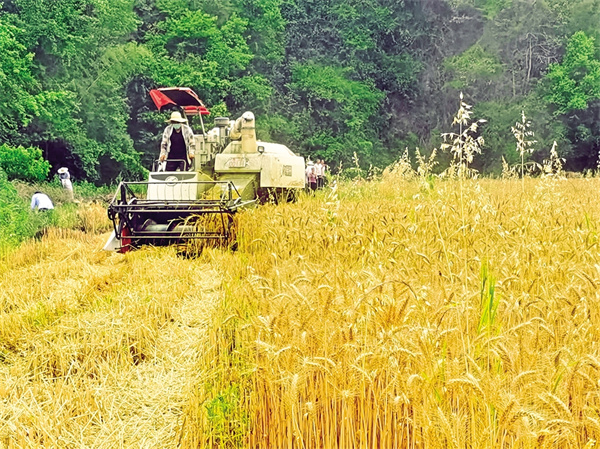 風(fēng)吹麥田千層浪,又到一年收獲時(shí)。在漢濱區(qū)晏壩鎮(zhèn)中心社區(qū)安康客意然農(nóng)業(yè)開發(fā)有限公司種植園區(qū)內(nèi),小麥在陽光的照耀下,閃著金燦燦的光芒,沉甸甸的麥穗隨風(fēng)搖曳,發(fā)出“沙沙”聲響。收割機(jī)正馬力全開,在金色麥浪中來回穿梭,伴隨著陣陣轟鳴聲,小麥從機(jī)艙中傾瀉而出,顆顆金黃、粒粒飽滿,裝滿車輛,整個過程一氣呵成,高效而精準(zhǔn)。