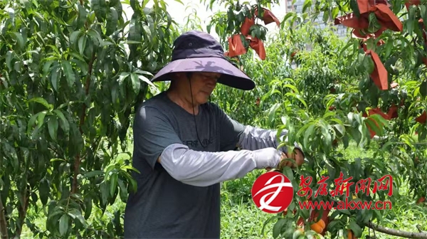 同樣迎來收獲的還有城關(guān)鎮(zhèn)的黃桃,在城關(guān)鎮(zhèn)龍嶺村的黃桃種植基地,連片的桃樹郁郁蔥蔥,金燦燦的黃桃壓彎了枝條,空氣中彌漫著誘人的桃香?;刎?fù)責(zé)人劉宏正忙著采摘,臉上洋溢著燦爛的笑容,他一邊采摘一邊介紹道:“我們這個(gè)桃園有金鳳黃桃、黃金黃桃、秋彤桃和冬桃四個(gè)品種,一共有9畝多,從6月中旬到10月左右,陸續(xù)都有成熟的桃子?!?/p>