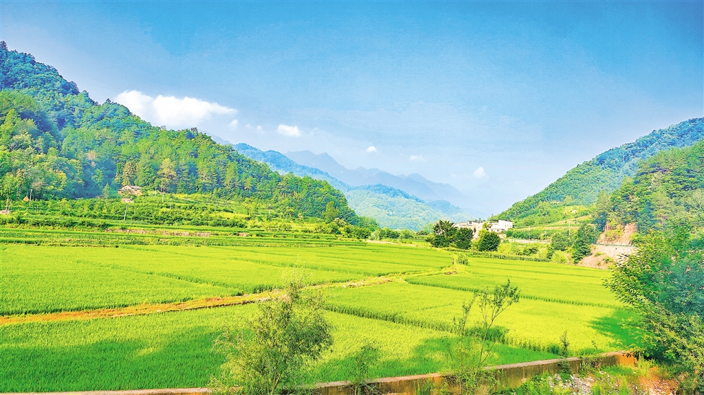 盛夏,旬陽市雙河鎮(zhèn)卷棚村,稻田、村莊、青山相映成趣,和美鄉(xiāng)村風(fēng)光如畫。潘文進(jìn) 攝
