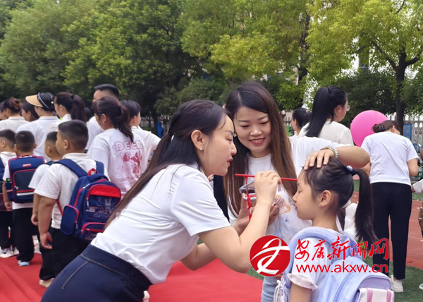 在傳統(tǒng)文化環(huán)節(jié)“朱砂啟智”時,校領(lǐng)導(dǎo)以朱砂點痣,傳古代“開筆禮”智慧;新生向孔子像行拜師禮,稚嫩鞠躬種下尊師種子;“擊鼓明智”環(huán)節(jié),新生逐個敲鼓,三聲鼓響承載“一鳴驚人”“學(xué)業(yè)有成”“志向遠(yuǎn)大”期許。儀式后,班主任帶新生入班,開啟校園新生活。?