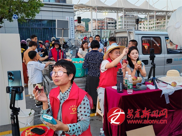 △ 漢陰縣蒲溪鎮(zhèn)第一書記組團(tuán)在縣村超比賽場(chǎng)地外直播賣桃子,累計(jì)幫銷紅桃2.8萬(wàn)余斤。