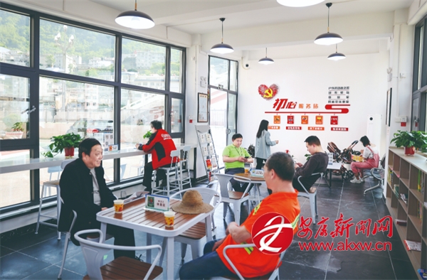 △ 嵐皋縣初心驛站中正在整頓休息的群眾以及外賣員。