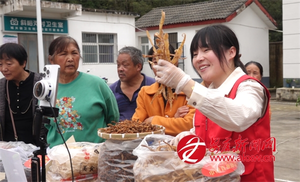“家人們看,這是咱們本地農民自己曬的香菇,肉質厚實,泡發(fā)后香味特別濃,炒菜燉湯都鮮……”10月15日,由寧陜縣婦聯、縣郵政分公司、城關鎮(zhèn)黨委聯合舉辦的“巾幗助農 寧陜好物”公益直播活動在城關鎮(zhèn)斜峪河村舉行。主播徐小妹正對著手機鏡頭,將周邊村莊農戶的特產進行展示,讓寧陜山貨通過直播“飛”向全國網友。