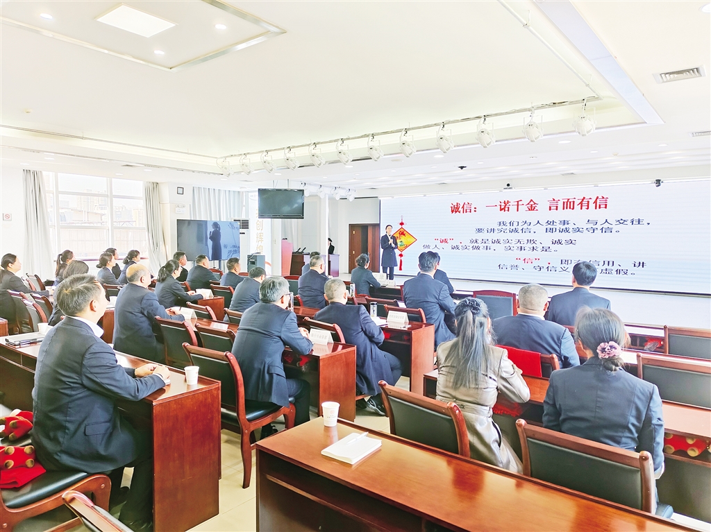 本網(wǎng)訊(記者 唐正飛 通訊員 楊光婷)“我們?yōu)槿颂幨?、與人交往,要講究誠信,即誠實守信……”11月21日,中國工商銀行安康分行會議室一場“以誠立身,以信致遠(yuǎn)”主題宣講會正在火熱進行。工作人員化身誠信“宣講員”,解讀“誠信”內(nèi)涵,分享踐行誠信故事。