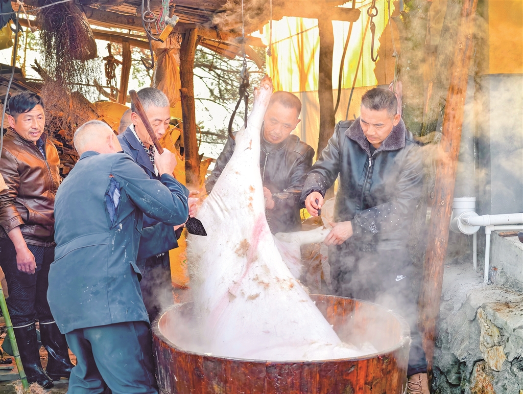 年豬肥碩,庖湯飄香。庖湯宴這一傳統(tǒng)習俗不僅凝聚著鄰里親情,更映照出當代農(nóng)民扎根鄉(xiāng)土、勤勞致富的生動圖景。在鄉(xiāng)村振興政策的支持下,越來越多像代明清一樣的村民,正通過自己的雙手創(chuàng)造更踏實、更紅火、更幸福的生活。
