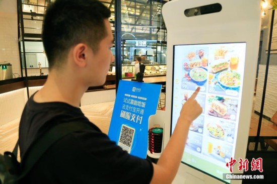 9月19日,顧客正在餐廳自助點餐。近日,杭州一家餐廳首次推出刷臉支付服務(wù),用戶開通該項功能后只需綁定手機號,通過支付平臺刷臉即可完成交易,再也無須擔(dān)心付款時手機沒電或者忘帶的尷尬。中新社記者 王遠(yuǎn) 攝