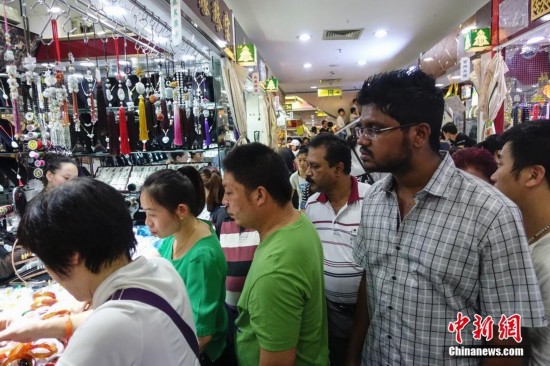 9月15日,幾位來自斯里蘭卡的游客慕名前來天意選購商品。當日,自1992年開業(yè)至今的北京天意市場迎來其在北京西城阜外大街營業(yè)的最后一日,商家趁機“瘋狂甩貨”,大批北京民眾也紛至沓來。這里曾是北京著名的小商品商城,聚集了數(shù)千家商戶。為疏解北京非首都功能,天意商城將于本月16日關門停業(yè)。中新社記者 崔楠 攝