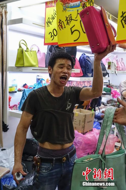 9月15日,一商家舉起商品大聲叫賣。當日,自1992年開業(yè)至今的北京天意市場迎來其在北京西城阜外大街營業(yè)的最后一日,商家趁機“瘋狂甩貨”,大批北京民眾也紛至沓來。這里曾是北京著名的小商品商城,聚集了數(shù)千家商戶。為疏解北京非首都功能,天意商城將于本月16日關門停業(yè)。中新社記者 崔楠 攝