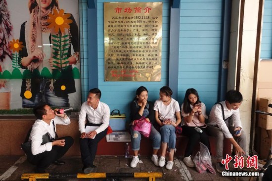 9月15日,市民購物后在天意批發(fā)市場中休息聊天。天意商城是北京規(guī)模最大的小商品批發(fā)兼零售市場,為疏解北京非首都功能,天意商城將于本月16日關門停業(yè)。中新社記者 韓海丹 攝