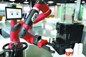 靈活的智能機(jī)械手將咖啡遞給顧客。