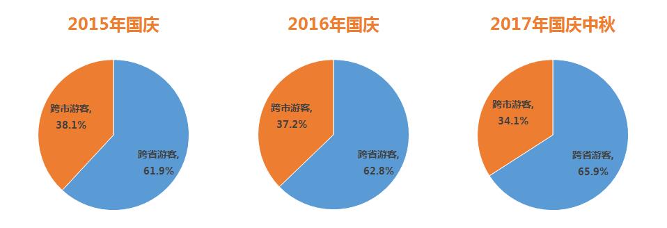 今年國慶、中秋連休形成八天超級假期,激發(fā)了居民的中長線出游熱情,游客中跨省游客人數(shù)較前兩年呈上升趨勢,占比達(dá)近三分之二。