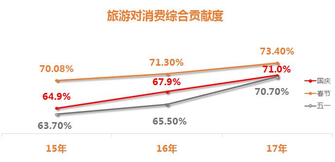 分析銀聯(lián)商務(wù)大數(shù)據(jù),今年國慶中秋假日旅游對泛消費行業(yè)綜合貢獻(xiàn)度已超過70%,在三個重要節(jié)假日中,貢獻(xiàn)度低于春節(jié),高于五一。