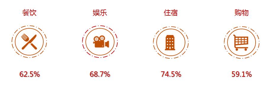 2017年國慶中秋假日旅游消費對餐飲、娛樂、住宿、購物四個行業(yè)的貢獻(xiàn)度均在5成以上。作為生活性服務(wù)業(yè)的重要組成部分,旅游消費為拉動相關(guān)行業(yè)經(jīng)濟(jì)做出了重要貢獻(xiàn)。