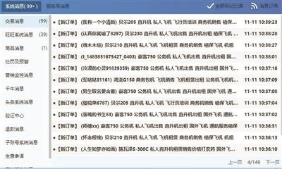 “一開(kāi)始我還跟他們講,你們就不要問(wèn)了,直接發(fā)朋友圈吧!”黃平說(shuō),“后來(lái)實(shí)在回復(fù)不過(guò)來(lái),只好設(shè)置了自動(dòng)回復(fù),‘雙11’大促期間,掌柜已忙瘋!本店所有出售飛機(jī)都是真機(jī),歡迎大家提交訂單轉(zhuǎn)發(fā)朋友圈!”