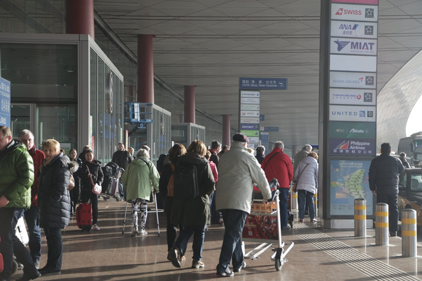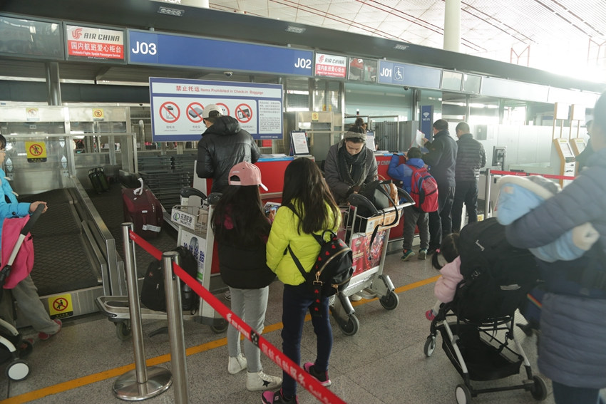 北京首都國(guó)際機(jī)場(chǎng)3號(hào)航站樓出發(fā)口,出行的旅客們已經(jīng)絡(luò)繹不絕