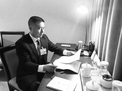 圖為俞學(xué)文代表在駐地修改建議。