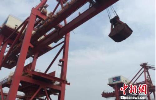 圖為散貨船進(jìn)行鐵礦砂裝卸作業(yè)。杭州海關(guān)供圖