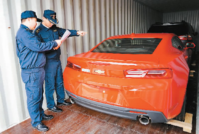 1月17日,河北省首批進(jìn)口汽車整車到達(dá)唐山港京唐港區(qū)。圖為唐山海關(guān)的工作人員在唐山港京唐港區(qū)核對(duì)進(jìn)口車輛的信息。 |