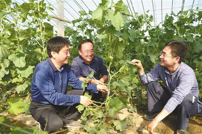為進(jìn)一步鞏固和加強(qiáng)基層黨組織建設(shè),打贏脫貧攻堅(jiān)戰(zhàn),今年以來(lái),山東臨邑縣選派120名優(yōu)秀年輕干部駐村幫扶,實(shí)行鄉(xiāng)鎮(zhèn)考勤、村里辦公,建立健全縣、鄉(xiāng)、村三級(jí)扶貧網(wǎng)格。駐村干部精準(zhǔn)制定扶貧方案,推進(jìn)基層組織轉(zhuǎn)化升級(jí),推動(dòng)社區(qū)(村)脫貧致富。圖為日前,派駐臨盤(pán)街道前楊村駐村干部崔磊(右一)在扶貧產(chǎn)業(yè)園了解果蔬種植情況。
