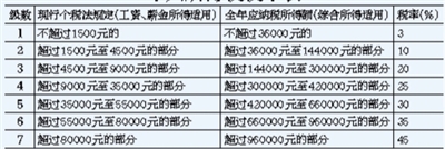 個(gè)人所得稅稅率表