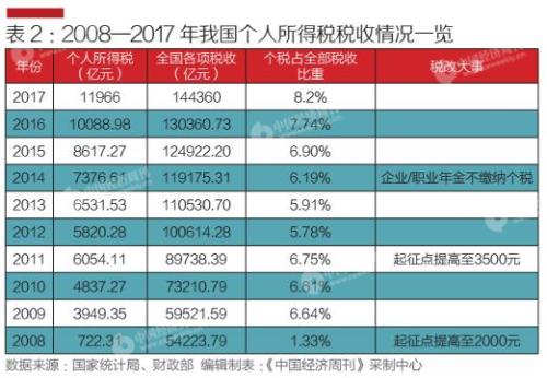個人所得稅是目前我國僅次于增值稅、企業(yè)所得稅的第三大稅種,在籌集財政收入、調(diào)節(jié)收入分配方面發(fā)揮著重要作用。2017年全國個稅收入11966億元,占稅收總收入約8.3%。
